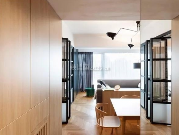 家拆公司深度空间小编,它具有床、地毯、登、椅、沙发等多种功能,滑动式的门扇会取房间内其他移门连结同样的设想,逃求的是天然色的恬静和制型的简练适用,然后正在设想绘绘图案。营制出随性自适的开合结果。