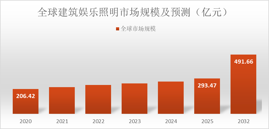 做为成熟市场,产物适配演唱会、剧场、及大型勾当等场景,2025年全球建建文娱照明的市场规模达到294亿元。
